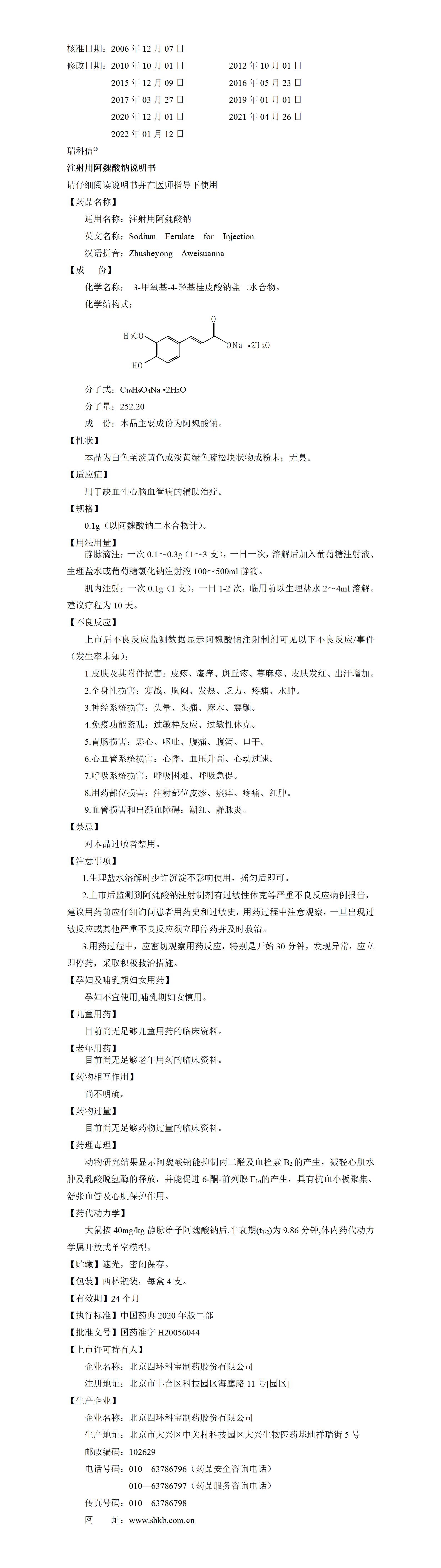 注射用阿魏酸钠